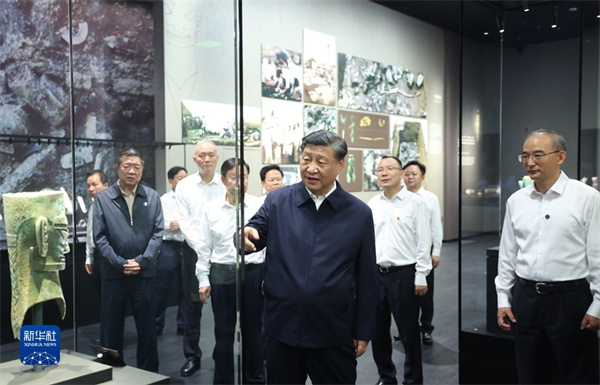 位于德陽市廣漢市西北鴨子河南岸的三星堆遺址,代表了數(shù)千年前的古蜀文明面貌和發(fā)展水平,是同時期長江流域文化內(nèi)涵最豐富、面積最大的都城遺址。26日下午,習(xí)近平來到三星堆博物館新館,參觀“世紀逐夢”、“巍然王都”、“天地人神”等展陳,了解三星堆遺址發(fā)掘歷程和古蜀文明成果。在三星堆博物館文物保護與修復(fù)館,習(xí)近平走進文保修復(fù)工作區(qū),仔細察看文物保護修復(fù)工作流程細節(jié)和最新技術(shù),同現(xiàn)場工作人員親切交流。習(xí)近平指出,三星堆遺址考古成果在世界上是叫得響的,展現(xiàn)了四千多年前的文明成果,為中華文明多元一體、古蜀文明與中原文明相互影響等提供了更為有力的考古實證。文物保護修復(fù)是一項長期任務(wù),要加大國家支持力度,加強人才隊伍建設(shè),發(fā)揚嚴謹細致的工匠精神,一件一件來,久久為功,做出更大成績。習(xí)近平代表黨中央,對三星堆博物館新館的落成使用表示熱烈祝賀,向廣大考古工作者表示衷心感謝和崇高敬意!
